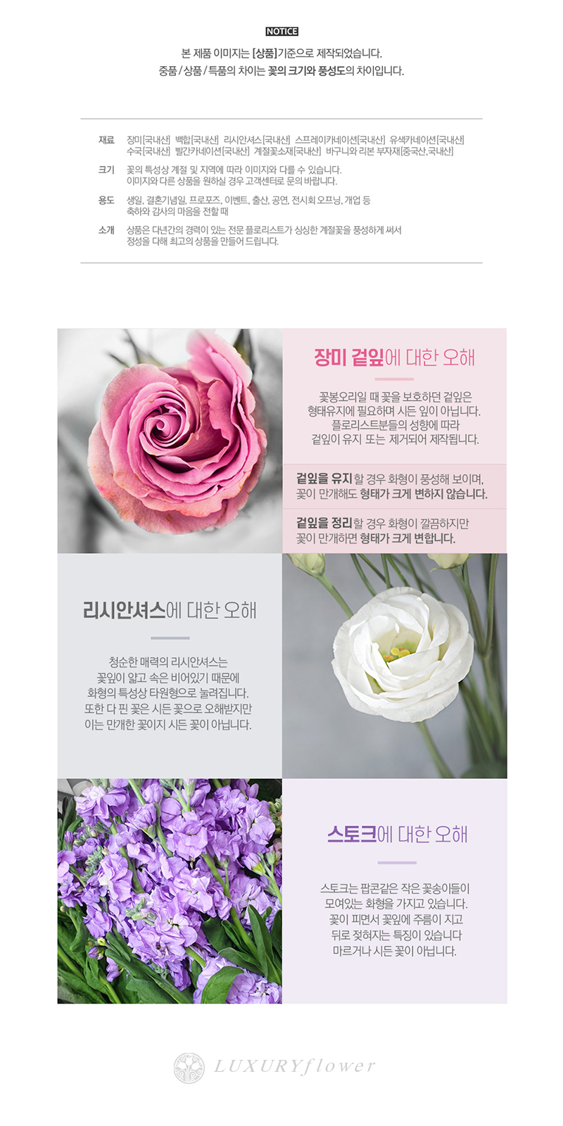 ※ 사진은 [상품가격] 기준으로 제작되었습니다. 중품/상품/특품의 차이점은 꽃의 크기와 풍성도 차이입니다.