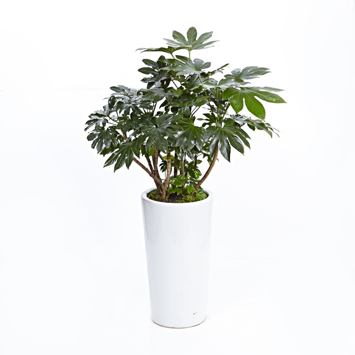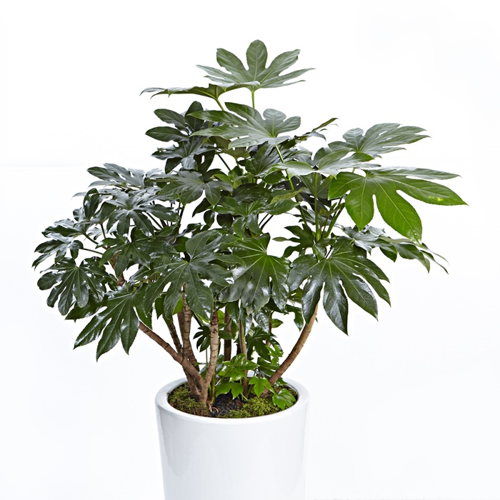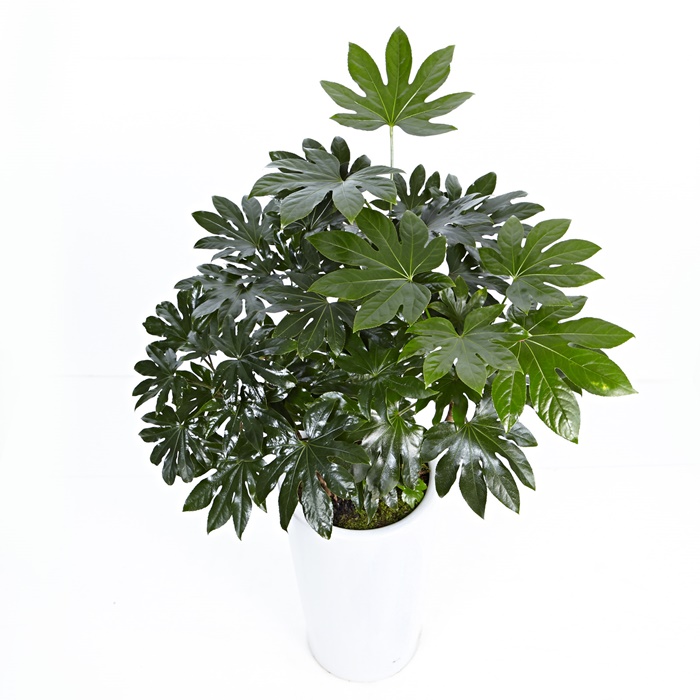 팔손이는 두릅나무과의 관엽식물로, 손가락처럼 7~11열로 깊게 갈라진 큰 잎은 양면에 털이 없고 짙은 녹색으로 광택이 있으며 뒷면은 황록색입니다.