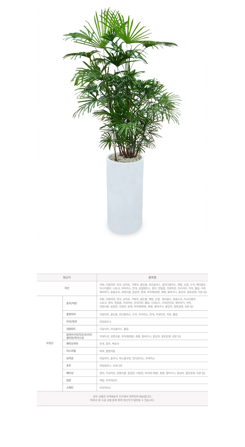 또한 관엽식물, 동.서양란, 분재등의 분화로된 상품의 경우에도