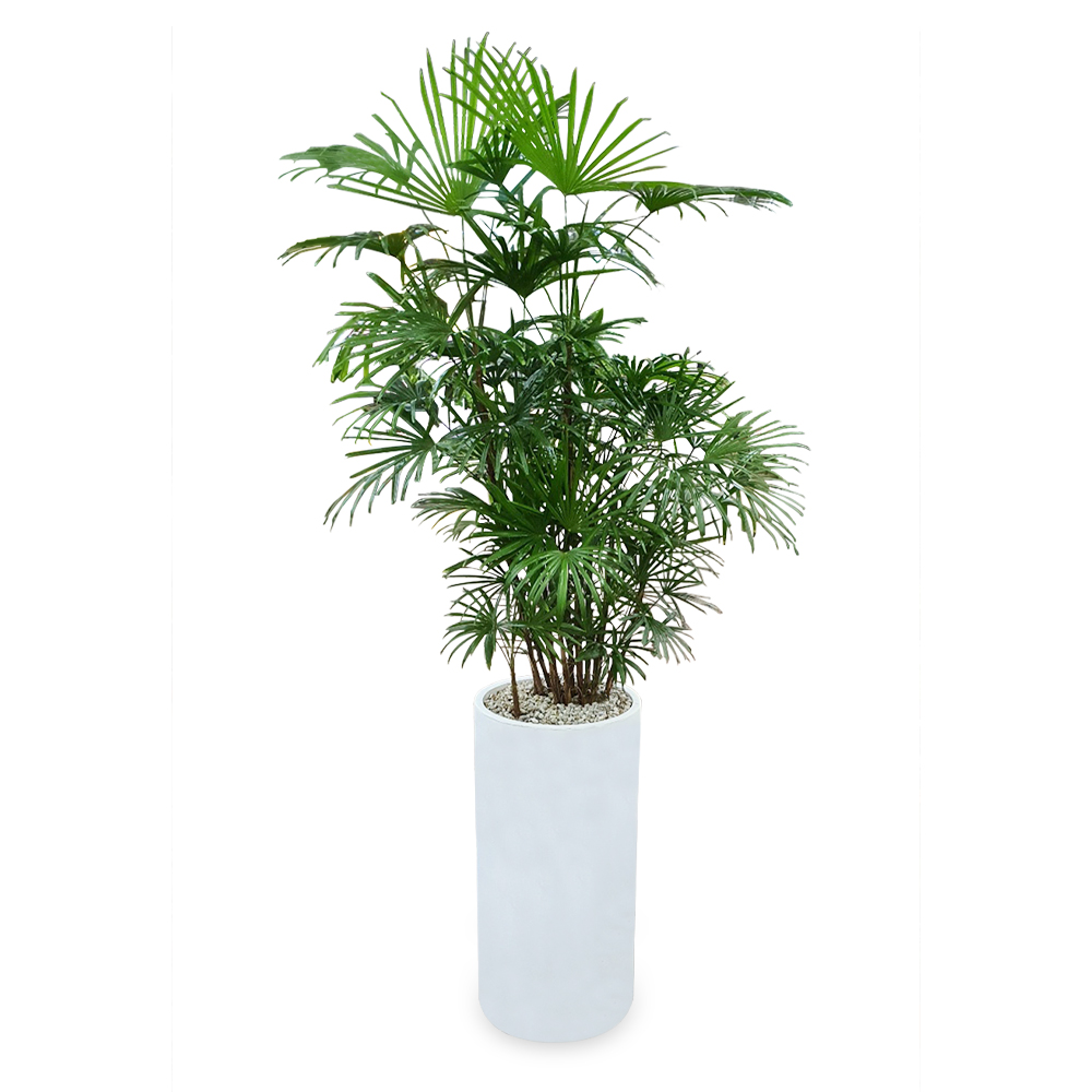 종려죽은 잎은 종려나무와 비슷하나 줄기는 대나무와 비슷하며, 원예품종이 매우 다양합니다. 잎은 커다란 반원 모양으로 깊게 갈라져 있습니다.